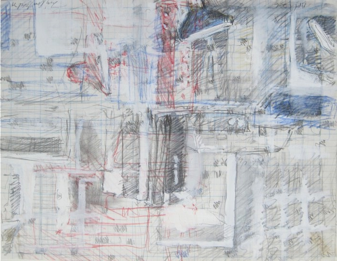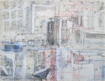 This portrait of Larry as well the apartment interior are multiple views that were rotated as drawn. Ultimately, I remember the goal being to create an overall drawing that was integrated as one good drawing and could also be viewed in any direction.