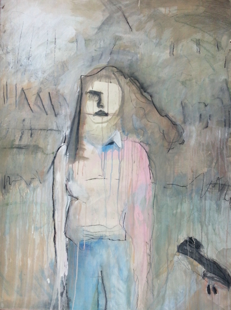 Acrylic, gesso, pastel, crayon, pencil on paper