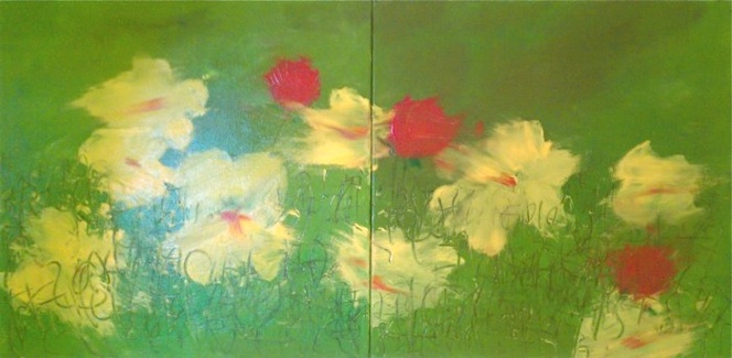 My first small flower studies were done initially just for myself and then easily given away to the many causes and auctions I support and sold for a fraction of my regular artwork. What I did not realize - these small early more traditional flower studies would then become pivotal works for my more contemporary versions that evolved over time. The multi-panel canvas paintings contain the concept of interchangeable canvases. In these works the panels can be moved into different positions creating multiple works within one piece.