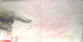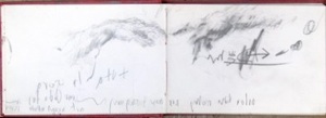 More recently, I discovered my “Chop Wood in the house drawings”. There is a very solid rock near a wood stove. It is perfect for taking heavy blows needed to further split wood without any effect other than an occasional mark to the wall. There are the water splash drawings that last momentarily and then evaporates on venetian stucco beyond the bathroom sink. Somehow these natural found drawings have less pomp and circumstance than any artwork created for the intention to be a work of art. They come when least expected, they only make the mark needed from the action. These drawings are economical in that respect and always seems to exhibit that certain natural beauty found in freedom. They typically contain the force or energy of the act. These incognito drawings have come into existence for a reason. Even if they had no intention to parade as art, they exist in the end just the same, for pure visual pleasure. These drawings can still be appreciated the same as any drawing by Michelangelo.